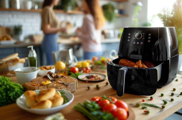 - Weniger Fett: Statt viel Öl kommt heiße Luft zum Einsatz.