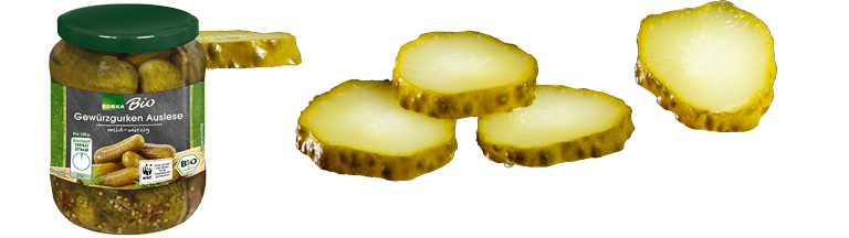 Die Gürkchen – die sauren eingelegten Gurken bringen den besonderen Touch mit etwas Essigsäure, Süße und Biss