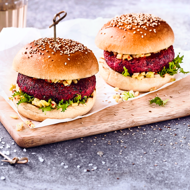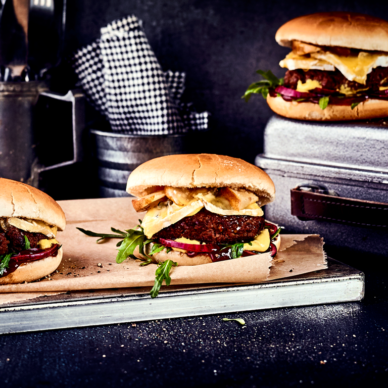 Fertige Burger zu verkaufen, ist so eine Sache. Da hat jeder seine bestimmten Vorstellungen. Wir empfehlen, einmal durch den Meyer-Markt zu streifen und im Obst- und Gemüsebereich, Backshop, im Tiefkühlbereich und den Frischetheken sowie im Sortiment Ihre Favoriten zu sammeln, um Zuhause Ihren ganz speziellen Burger zu bauen. Vor allem im Pattie-Bereich – dem Herz des Burgers – bieten wir eine wunderbare Vielfalt mit Markenpatties, Chickenpatties, Veggie-Patties etc. Das hier stellt nur eine Möglichkeit von 1000 dar. Und es gibt noch so viele Beispiele. Es folgen einige Inspirationen.