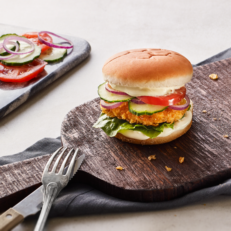 Der Pattie – das Herz des Burgers. Eine aromatische Scheibe Rinderhackfleisch, gut gewürzt und saftig gebraten. Alternativ ist auch ein paniertes Hähnchen- oder Fischfilet oder ein Gemüsebratling für Vegetarier möglich. Zusammen mit Käse vor allem aromatisch!