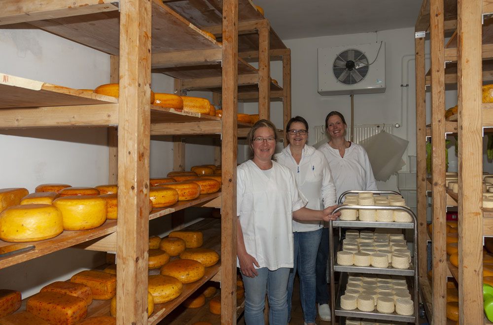 Bereits seit 1664 – so sagt es die erste urkundliche Erwähnung – ist der Hof im Familienbesitz und lebt von der Landwirtschaft. Im Jahr 1994 entstand die Idee, die eigene Milch direkt zu vermarkten und den eigenen Käse herzustellen. Heute leben zwei Familien auf dem Hof und sind alle mit Leib und Seele mit der natürlichen Käseherstellung aus Milch der eigenen kleinen Herde verbunden.