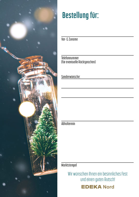 Damit Ihrem diesjährigen Festmahl nichts im Wege steht, nutzen Sie unsere Vorbestellmöglichkeit. Im Meyer-Markt in Garstedt finden Sie dafür den altbewährten Feststagsbestellflyer. Dieser liegt direkt an den Theken vielfach aus. Sie können natürlich auch gern unsere Mitarbeiter fragen. Auf diesem Flyer finden Sie alles, was das Genießerherz begehrt: Wild, Rind-, Schweine- und Lammfleisch von feinster Qualität.