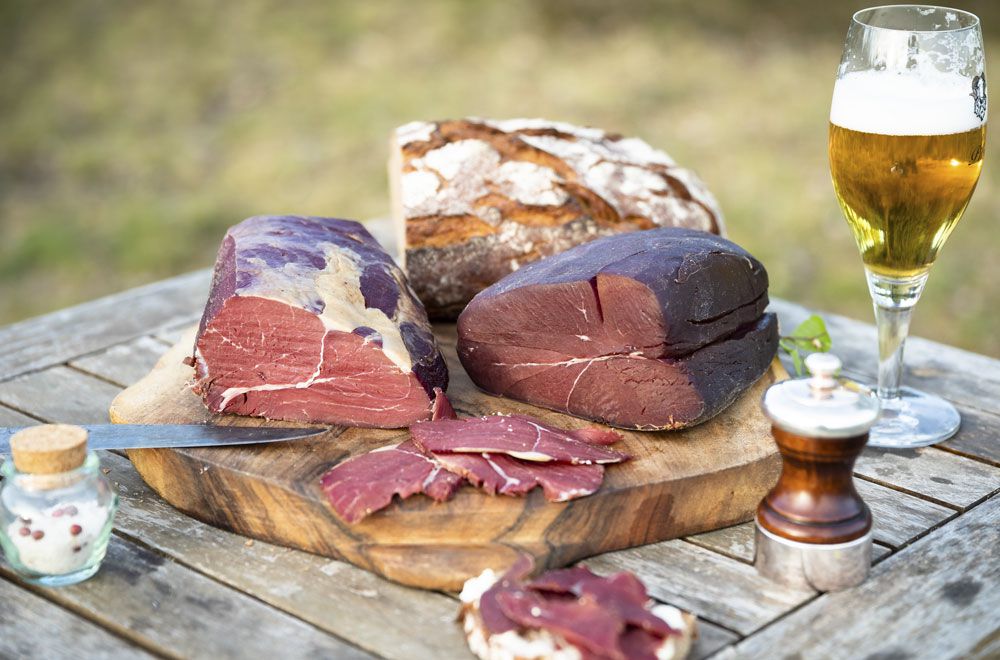 „Besseres Fleisch, als das von Wildtieren, gibt es wohl nicht“, meinen Philipp Zieseniß und Georg Tünsmeyer – alias Ziesemeyer, die ihre Firma 2016 gründeten. Medikamente oder andere chemische Mittel kennen freilebende Tiere nicht. Das Wildfleisch hat Charakter und ein mildes Aroma, da sich Hirsch und Co. von natürlichen Gräsern und Kräutern ernähren. Die Nährstoffdichte an Vitamine, Eisen und anderen Spurenelementen liegt im Wildfleisch über dem von Rind oder Schwein. Außerdem ist es reich an Eiweiß mit einer hohen biologischen Wertigkeit. Außerdem verwenden die beiden nur Keulenfleisch stressfrei erlegter Tiere aus regionalen Wäldern, um die eindeutige Rückverfolgbarkeit zu bewahren. Die zwei Freunde aus der Lüneburger Heide, denen die Königsdisziplin des Metzgerhandwerks – die Schinkenherstellung – schon lange am Herzen liegt, produzieren Wildschinken der höchsten Qualität. Der Schinken wird nach überlieferter Rezeptur mit viel Liebe, Fingerspitzengefühl beim Salzen und Würzen, und Handarbeit beim Umschichten über sechs Wochen veredelt. Den letzten und wichtigen Schliff verleiht das 14 tägige schonende Räuchern über Buchenholz.
